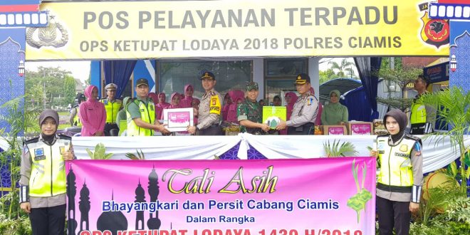 Pada kegiatan ini juga Bhayangkari Cabang Ciamis dan Persit XXIV 0613/Ciamis memberikan dukungan berupa Bingkisan kepada petugas Pospam yang melaksanakan Ops Ketupat 2018.