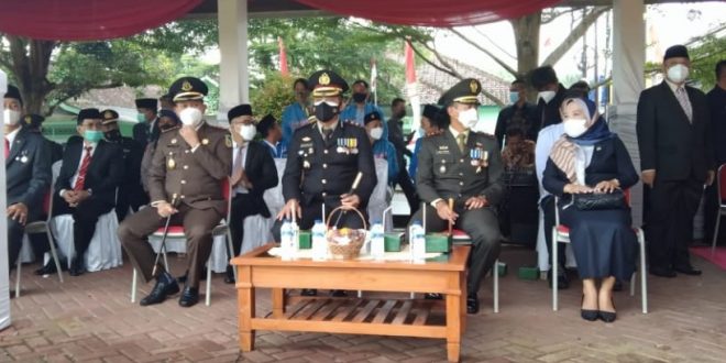 Polres Ciamis – Kapolres Ciamis AKBP Wahyu Broto Narsono Adhi, S.I.K., M.Sc., bersama Dandim 0613/Ciamis Letkol Czi Dadan Ramdani, S.Sos., M.A.P., menghadiri upacara peringatan Hari Jadi ke-9 Kabupaten Pangandaran. Upacara tersebut digelar di Lapang Alun Alun Parigi, Kecamatan Parigi, Kabupaten Pangandaran. Senin (25/10/2021).