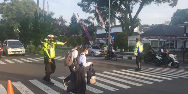 Sat Lantas Polres Ciamis Lakukan Pengaturan Arus Lalu Lintas Pagi Hari.