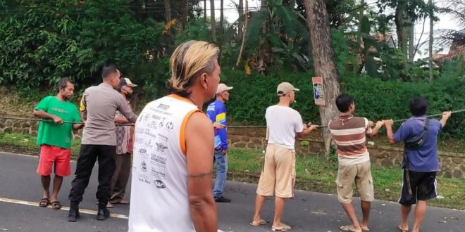 Polres Ciamis – Personel Polsek Cisaga Polres Ciamis Polda Jabar melaksanakan pengamanan kegiatan penebangan pohon di Jalan Raya Cisaga-Banjar di wilayah Desa Mekarmukti Kecamatan Cisaga, Kabupten Ciamis. Pengamanan ini dipimpin langsung oleh Kapolsek Cisaga Iptu Agus Budi beserta anggota Polsek Cisaga. Saat itu Polsek Cisaga turut bersinergi dengan pihak desa saat pelaksanaan penebangan pohon. Rabu (2/11/2022).