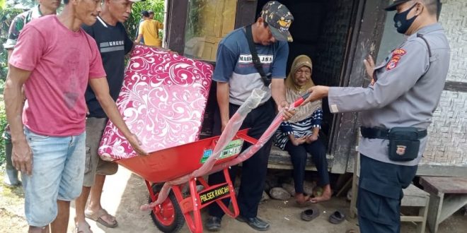 Polsek Rancah Serahkan Bantuan Itu Arko Dan Kasur Kepada Seorang Warga.