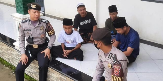 Polres Ciamis – Satuan Samapta Polres Ciamis Polda Jabar melaksanakan patroli dialogis ke lingkungan pondok pesantren di wilayah hukum Polres Ciamis. Patroli kali ini dilakukan ke lingkungan Pondok Pesantren Daarul Huda Meleber Ciamis Kab Ciamis. Patroli dialogis tersebut dibawah pimpinan AKP Cecep Edi Sulaeman selaku Kasat Samapta Polres Ciamis. Sementara patroli kali ini melibatkan tiga personel Unit Patroli Sat Samapta Polres Ciamis. Mereka diantaranya yakni Bripka Duddy, Brigadir Havizh dan Bripda Diki Adhi. Senin (05/12/2022).