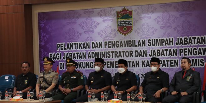 Ciamis – Wakapolres Ciamis Polda Jabar Kompol Apri Rahman, SE., menghadiri pelantikan dan pengambilan sumpah aparatur sipil negara di lingkungan Pemerintah Daerah Kabupaten Ciamis. Kegiatan tersebut dilaksanakan di Aula Adipati Kusumahdiningrat Sekretariat Daerah Kabupaten Ciamis, Jawa Barat, Kamis (05/01/2023).