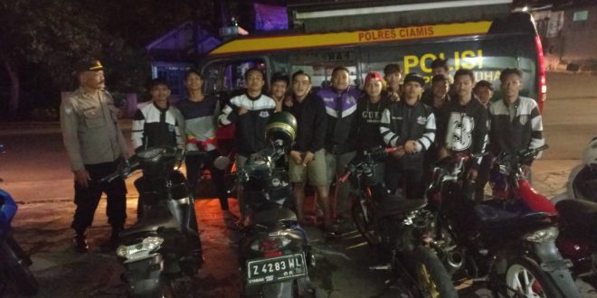 Ciamis – Personel Satuan Binmas Polres Ciamis Polda Jabar melaksanakan pembinaan kepada komunitas club motor di Kabupaten Ciamis. Pembinaan ini diberikan kepada Club Motor Black Baron di halaman Kantor Kecamatan Baregbeg, Kabupaten Ciamis, Jawa Barat, pada Sabtu, 7 Januari 2023 malam sekitar pukul 23.30 WIB.