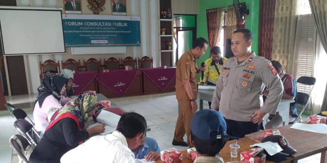 Polres Ciamis – Sinergitas TNI-Polri, Polsek Ciamis Polres Ciamis bersama Koramil Ciamis melaksanakan giat Forum Konsultasi Publik (FKP) Pendataan Awal Regsosek (Satu Data Program Perlindungan Sosial dan Pemberdayaan Masyarakat). Kegiatan itu digelar di Aula Desa Saguling, Kec. Baregbeg, Kab. Ciamis, Jawa Barat, Senin (8/5/2023).