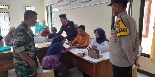 Polres Ciamis – Guna memberikan rasa aman kepada warga masyarakat penerima bantuan langsung tunai dana desa (BLT-DD) Desa Kaso, personel Polsek Rancah Polres Ciamis Polda Jabar bersama Koramil 1301/Ciamis melakukan monitoring sekaligus pengamanan. Penyaluran bantuan tersebut dilaksanakan di Aula Kantor Desa Kaso, Kecamatan Tambaksari, Kabupaten Ciamis. Jumat (12/5/2023).