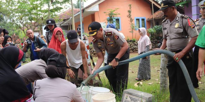 Selasa 31 Juli 2018, Kapolres Ciamis AKBP Bismo Teguh Prakoso turun tangan mengerahkan personilnya. Mengulurkan tangan, memberikan bantuan air bersih kepada warga di wilayah tersebut.