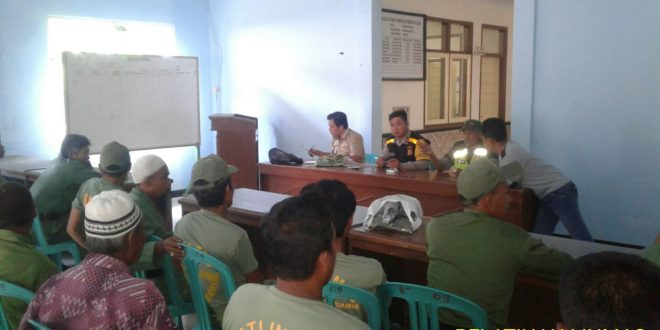“Linmas adalah Satuan Perlindungan Masyarakat yang mempunyai tugas mendukung penanganan masalah ketentraman, ketertiban dan keamanan di lingkungannya, dan selain itu Linmas juga berfungsi membantu terciptanya kondisifitas dan penanggulangan bencana alam serta kegiatan sosial di lingkungan Desanya.” Jelas Bhabinkamtibmas.
