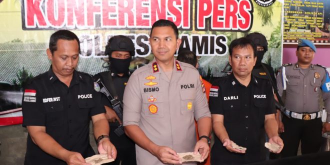 Polres Ciamis – Sat Res Narkoba Polres Ciamis berhasil mengungkap kasus peredaran narkotika jenis ganja dari seorang tersangka berinisial AR (36) warga garut yang di tangkap di Alun – alun kecamatan Cisaga Kab. Ciamis.