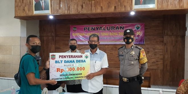 Polres Ciamis – Guna memberikan rasa aman kepada warga masyarakat penerima bantuan langsung tunai dana desa (BLT-DD) Desa Bojongmengger, Polsek Cijeungjing Polres Ciamis menerjunkan anggota Bhabinkamtibmas untuk melakukan memonitoring. Penyaluran bantuan tersebut dilaksanakan di Aula Kantor Desa Bojongmengger Kec Cijeungjing Kab Ciamis. Kamis (29/04/2021)