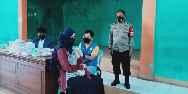 Kapolsek Cikoneng Lakukan Monitoring Pelaksanaan Vaksinasi Di Wilayah Desa Sindangkasih.