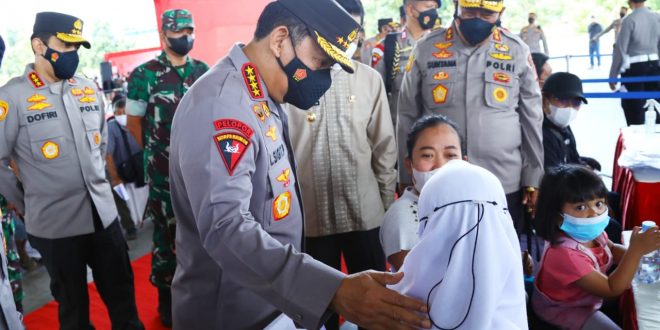 Jawa Barat – Kapolri Jenderal Listyo Sigit Prabowo menghadiri kegiatan akselerasi vaksinasi serentak di Gedung Dome Bale Rame, Kabupaten Bandung, Jawa Barat, Jumat (7/1/2022). Percepatan tersebut juga digelar seluruh wilayah Indonesia.