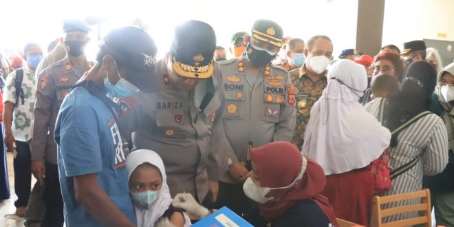 Polres Ciamis – Wakil Kepala Kepolisian Daerah Jawa Barat Brigadir Jenderal Polisi Bariza Sulfi, S.I.K., meninjau pelaksanan vaksinasi merdeka anak di wilayah Kabupaten Pangandaran. Vaksinasi merdeka anak tersebut digelar di Piamari Aquarium Pangandaran, Babakan, Pangandaran, Jawa Barat. Kamis (13/01/2022).