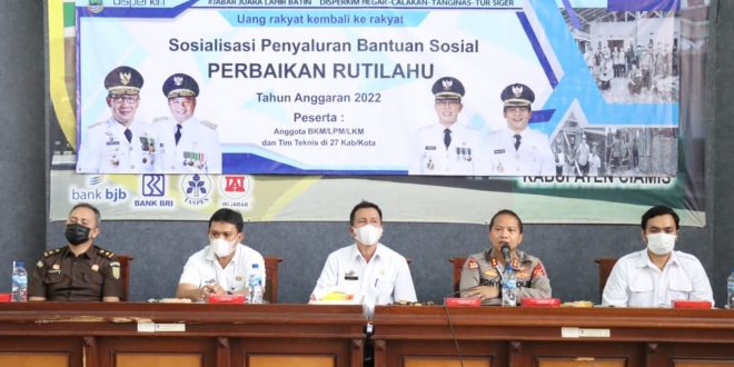 Polres Ciamis – Kapolres Ciamis AKBP Tony Prasetyo Yudhangkoro, S.H., S.I.K., M.T., menghadiri acara sosialisasi kepada BKM/LKM Penerima Bantuan Sosial Perbaikan Rutilahu di Kabupaten Ciamis. Acara tersebut digelar di Aula Kantor Badan Pengelolaan Keuangan Daerah Kabupaten Ciamis. Rabu (23/03/2022).