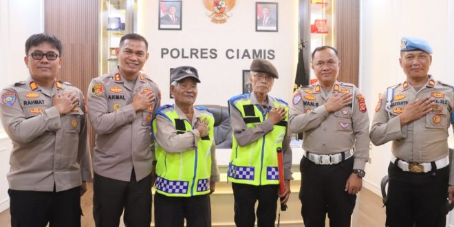 Ciamis – Siapa sangka, di balik dedikasi seorang kakek bernama Masro (75) yang bertahun-tahun mengabdikan diri mengatur lalu lintas secara sukarela di tanjakan Alinayin, Jelat, Ciamis, tersimpan sebuah cita-cita mulia yang tak kesampaian: menjadi seorang anggota Polri. Kisah inspiratif inilah yang membuat Polres Ciamis memberikan penghormatan khusus kepada Masro, bahkan mengajaknya berkunjung langsung ke Mapolres Ciamis hari ini. Minggu (5/6/2025)