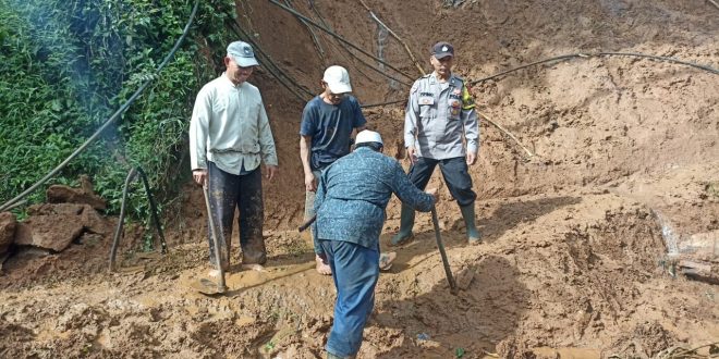 Ciamis – Personel Polsek Kawali Polres Ciamis bergerak cepat meninjau lokasi kejadian tanah longsor yang terjadi di wilayah Dusun Cikawung RT 32/13 Desa Sindangsari, Kecamatan Kawali, Kabupaten Ciamis. Longsor tersebut menimpa sebagian kandang ayam milik warga setempat bernama Ust Aher, dengan ukuran sekitar 10×4 meter. Peristiwa ini terjadi setelah hujan deras mengguyur wilayah Kawali pada Kamis sore. Kegiatan peninjauan dilakukan oleh jajaran Polsek Kawali pada Jumat (07/11/2025).