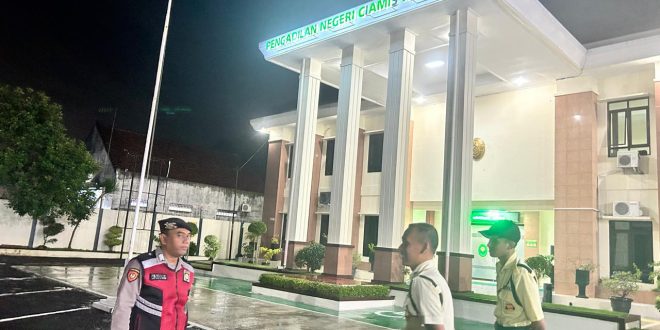 CIAMIS ~ Personel Satuan Samapta Polres Ciamis Polda Jabar melaksanakan patroli kamtibmas ke kawasan objek vital seperti perkantoran di Kabupaten Ciamis. Kegiatan ini sekaligus untuk berkoordinasi dan pembinaan ke satuan keamanan (Satpam) perkantoran. Seperti ini dilakukan ke Anggota Satpam Kantor Pengadilan Negeri Ciamis, Kecamatan Ciamis, Kabupaten Ciamis, Jawa Barat, Jumat, 23 Januari 2026, malam.