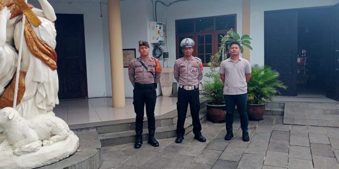 CIAMIS ~ Jajaran personel Polres Ciamis Polda Jawa Barat melaksanakan pengamanan kegiatan ibadah umat kristiani di wilayah Kabupaten Ciamis. Pengamanan ini dilaksanakan di sekitar Gereja Katolik Santo Yohanes Pembabtis Ciamis, Jl. Pemuda No.56-58, Ciamis, Kecamatan Ciamis, Kabupaten Ciamis, Jawa Barat, Minggu (8/11/2025)