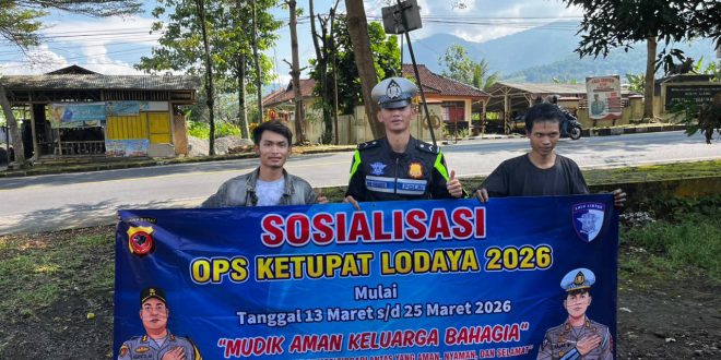 Ciamis – Dalam rangka meningkatkan kesadaran masyarakat terhadap pentingnya keselamatan berlalu lintas serta mendukung kelancaran arus mudik Lebaran, jajaran Satuan Lalu Lintas Polres Ciamis melaksanakan kegiatan Polantas Menyapa sekaligus sosialisasi Operasi Ketupat Lodaya 2026 kepada masyarakat di wilayah Kabupaten Ciamis pada Minggu pagi (15/03/2026).